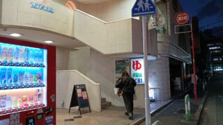 平和湯はビルの地下1階にあります。昔ながらの「ゆ」の看板に誘われ階段を下ります。