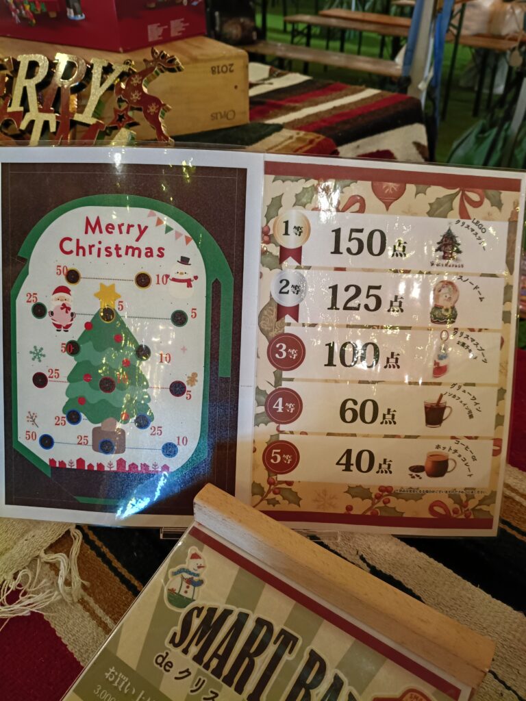 3000円で1回できて、150点取ると大きいレゴのクリスマスツリーが貰えます。