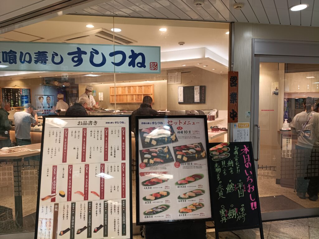 駅構内にある、立ち食い寿司のすしつねさんに行ってきました。場所はこちら。