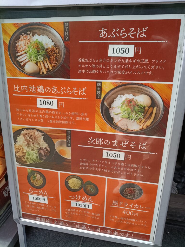 しかし立て看板を見ると、どどんと3種のあぶらそば系のメニューが。