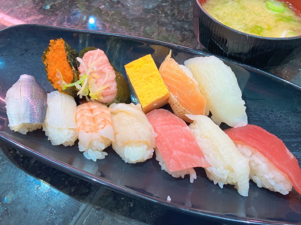 この価格帯にしては脂が乗ったサーモンと、イカもツルっとした食感で美味しかったです。