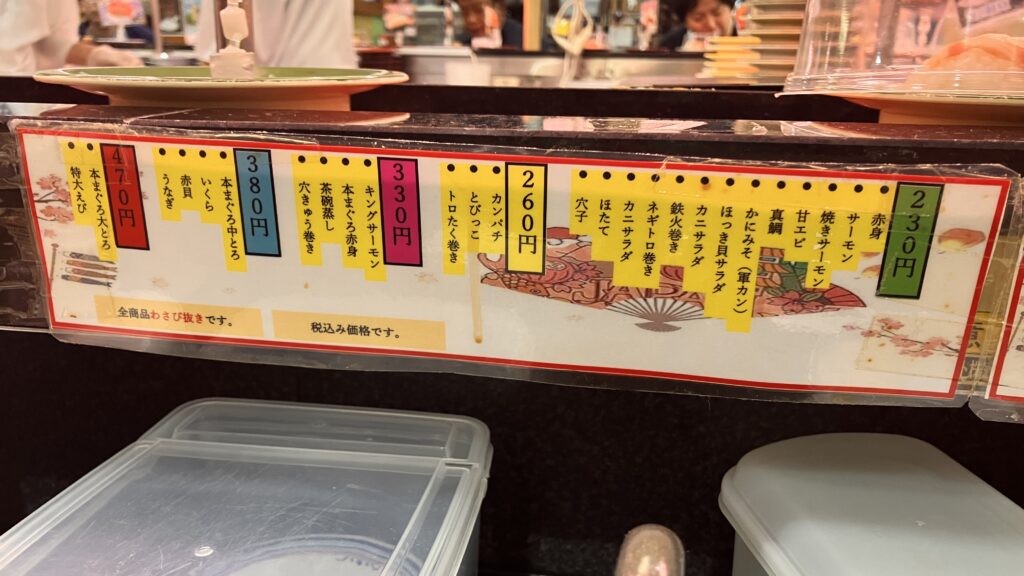 グランドメニューも大手回転ずしチェーンに引けを取らない値段です。