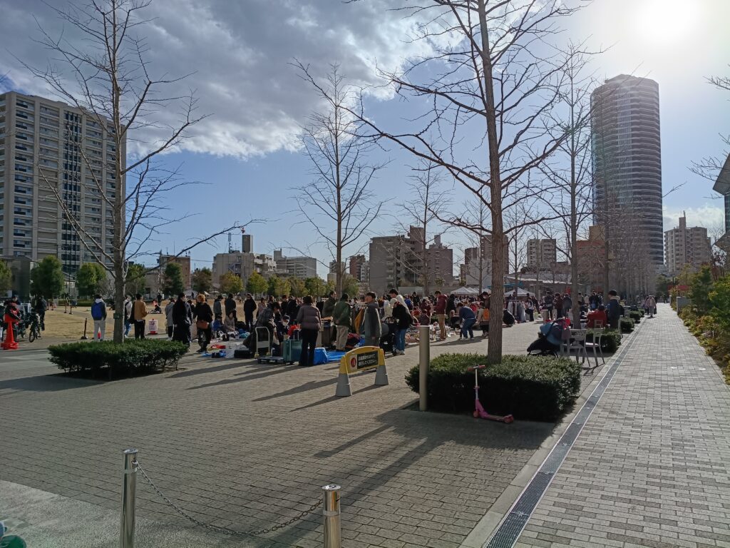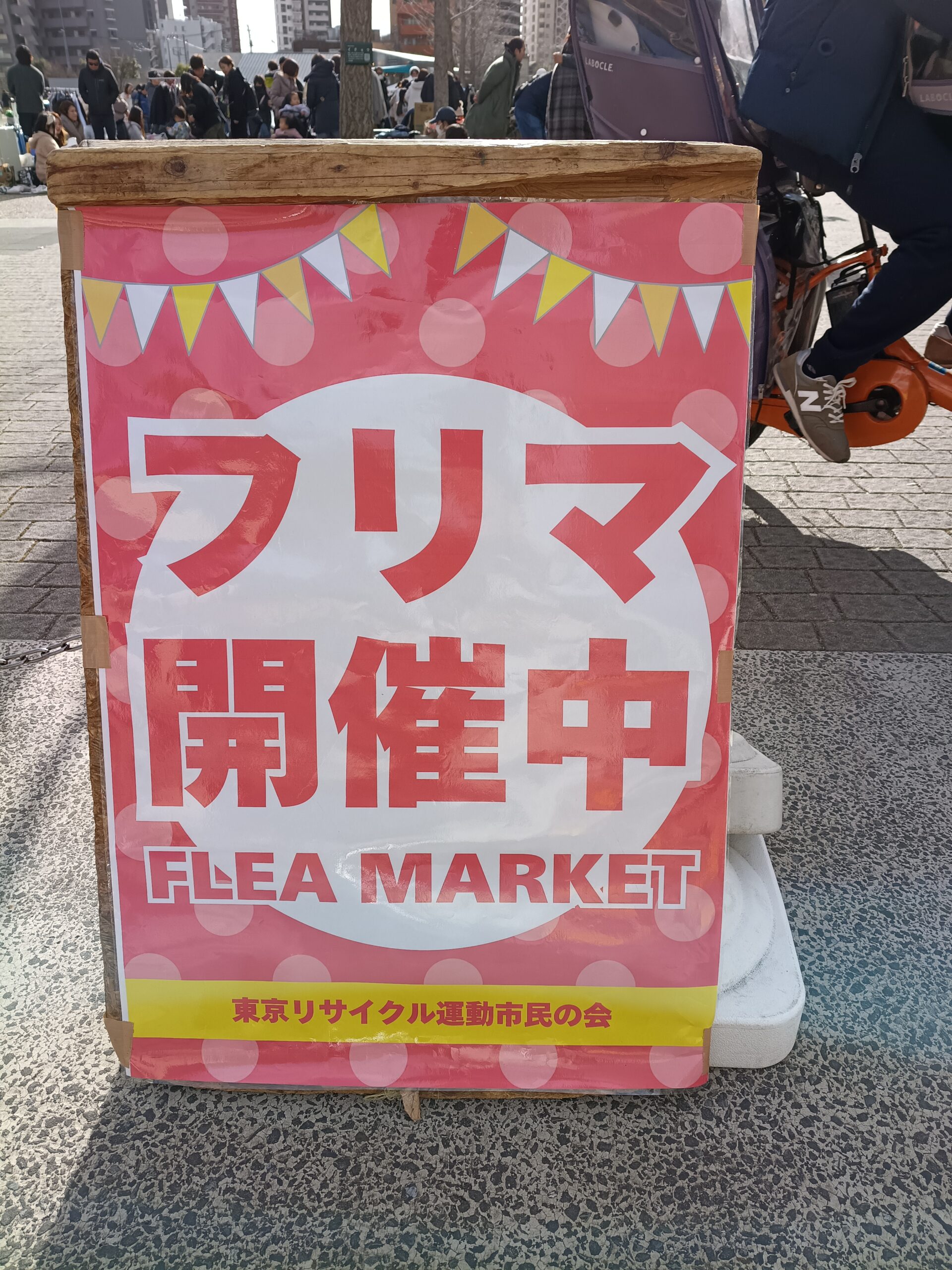 近くの立て看板からもフリマが開催中であることが分かります。