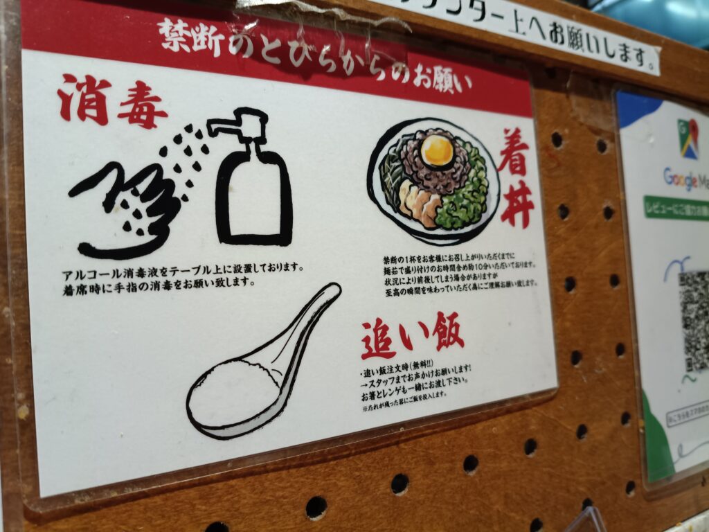 麺を食べ終わった後の追い飯は、無料で貰えるみたいです。