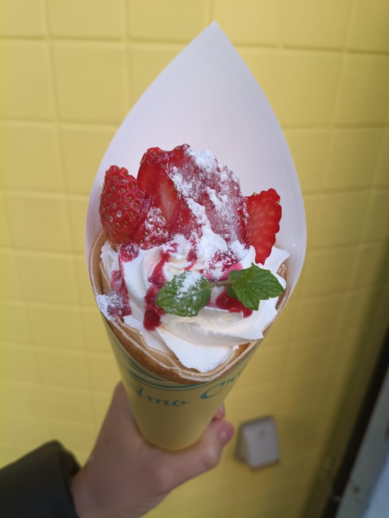 ちなみにここのクレープ屋さんはアニメと頻繁にコラボしているそうで、該当のアニメが好きなお客さんもチラホラ見ました。
