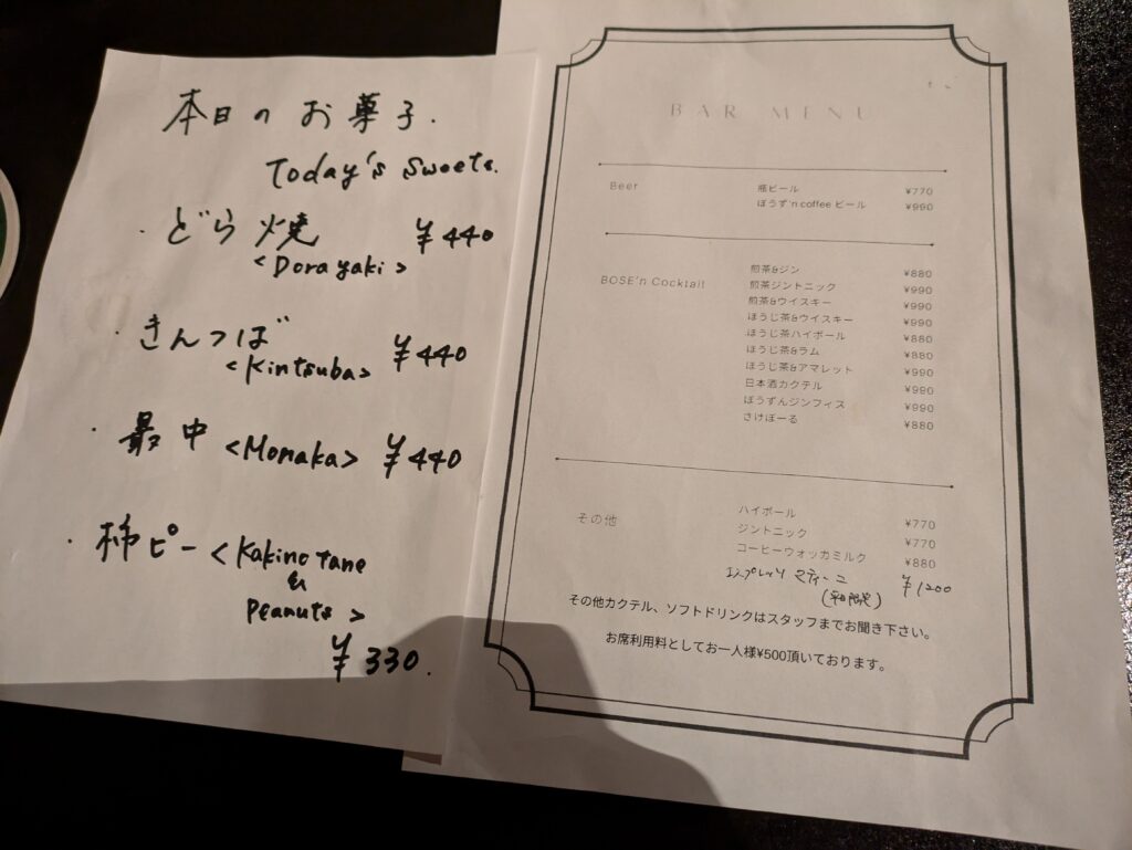 コスパが良い!というわけではないので(席料も1人500円かかります)、1人1杯とおつまみを何か頼んで、喫茶店感覚でゆっくり過ごすのがオススメです。