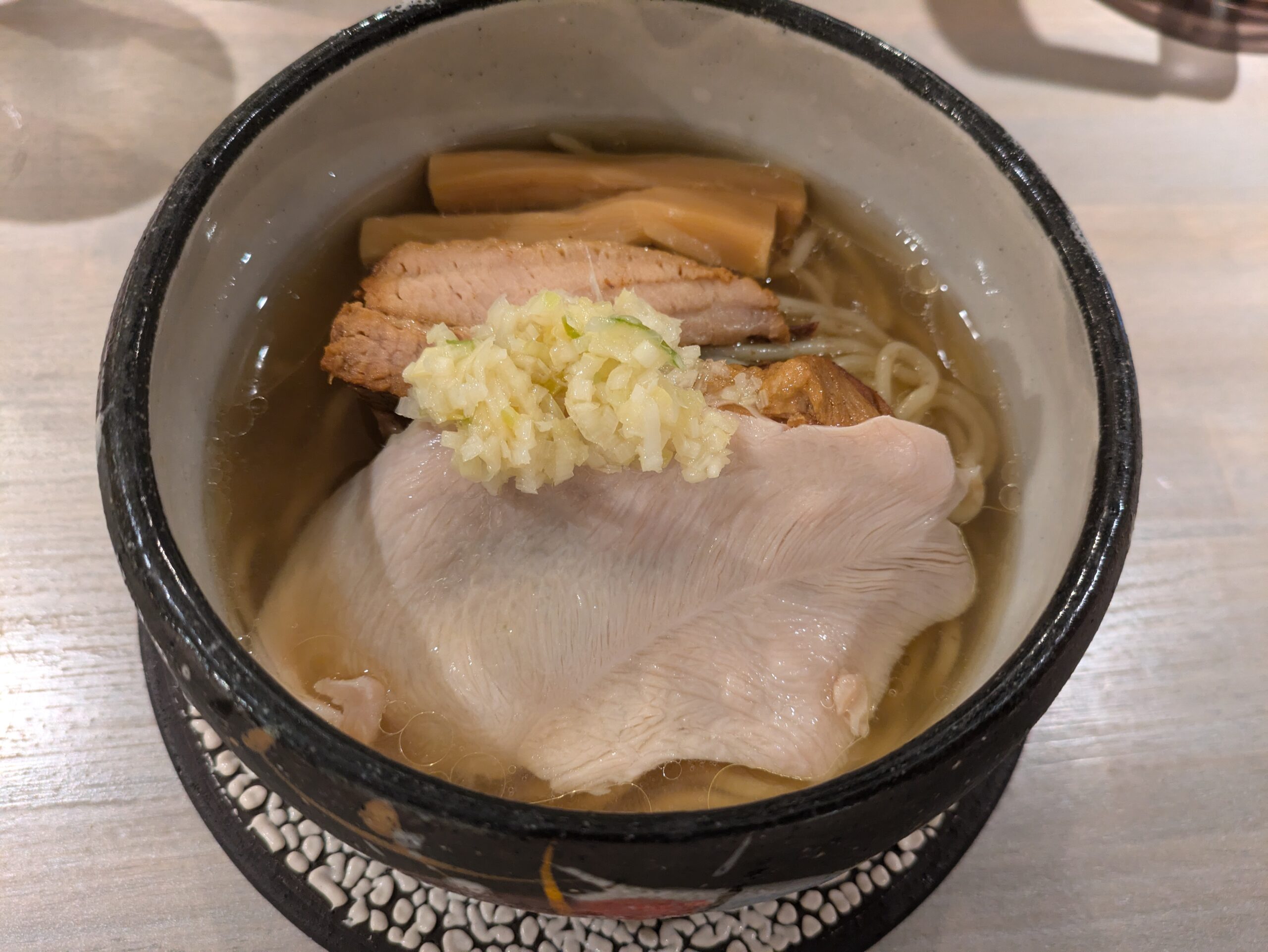 ちなみに、スープはあっさり系というよりは貝の味がしっかりする濃い目のラーメンという印象です。