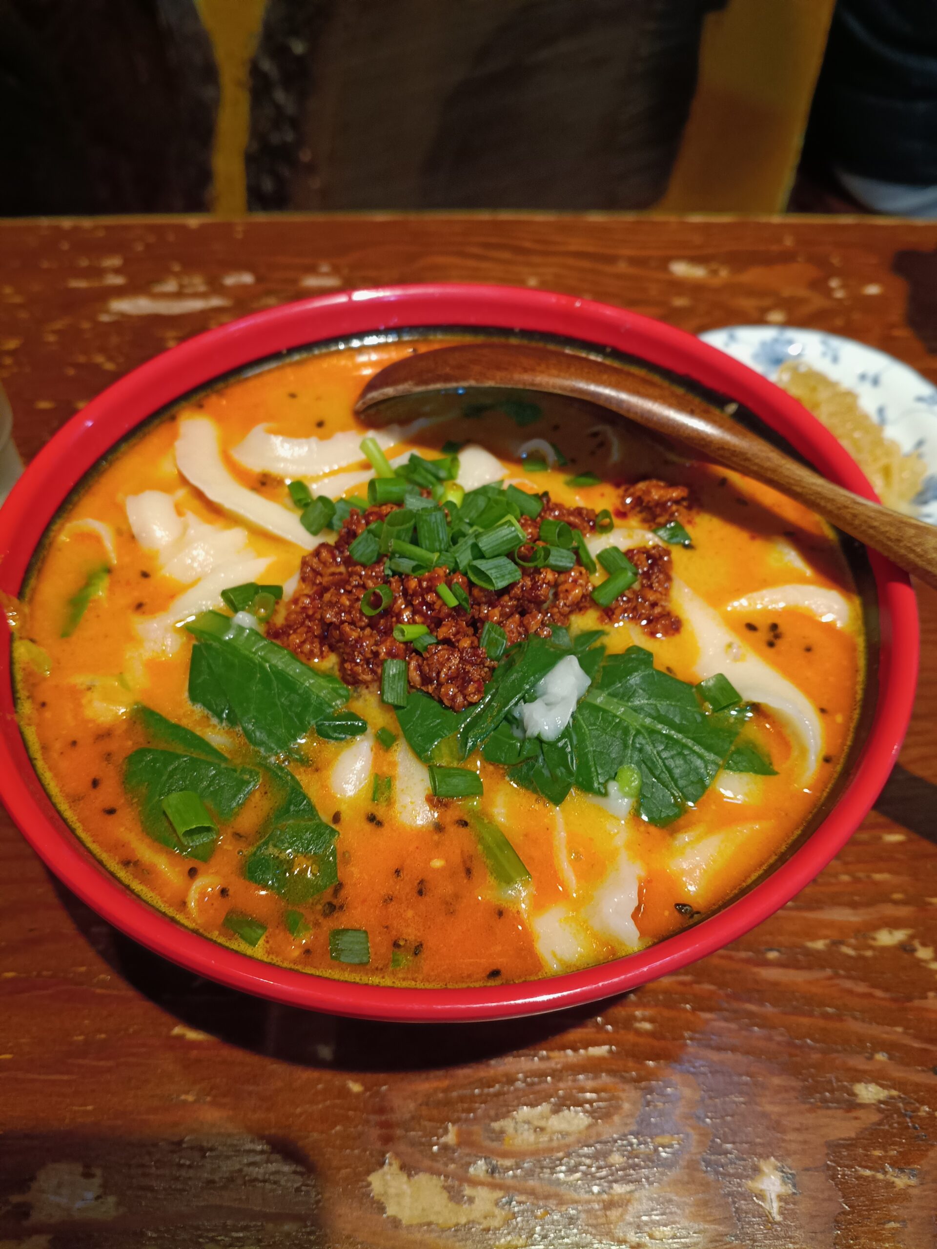 パクチーなどは載っていない、いわゆるシンプルなタンタンメンですが麺はもちろん刀削麵です。