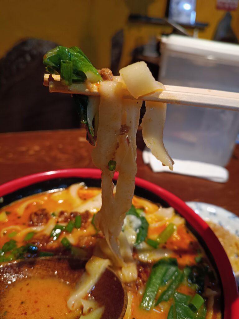 麺の断面はこんな感じ。刀削麺らしく短めの麺です。