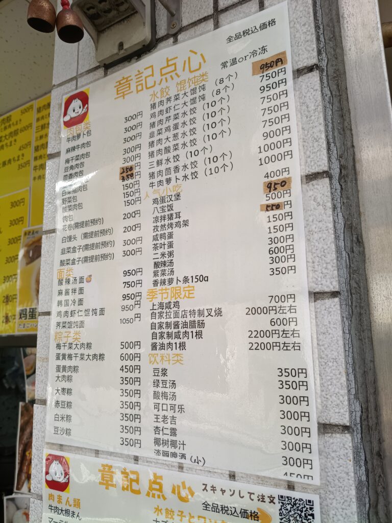 中国のお客さんも多いため、もちろん中国語のメニューも。
