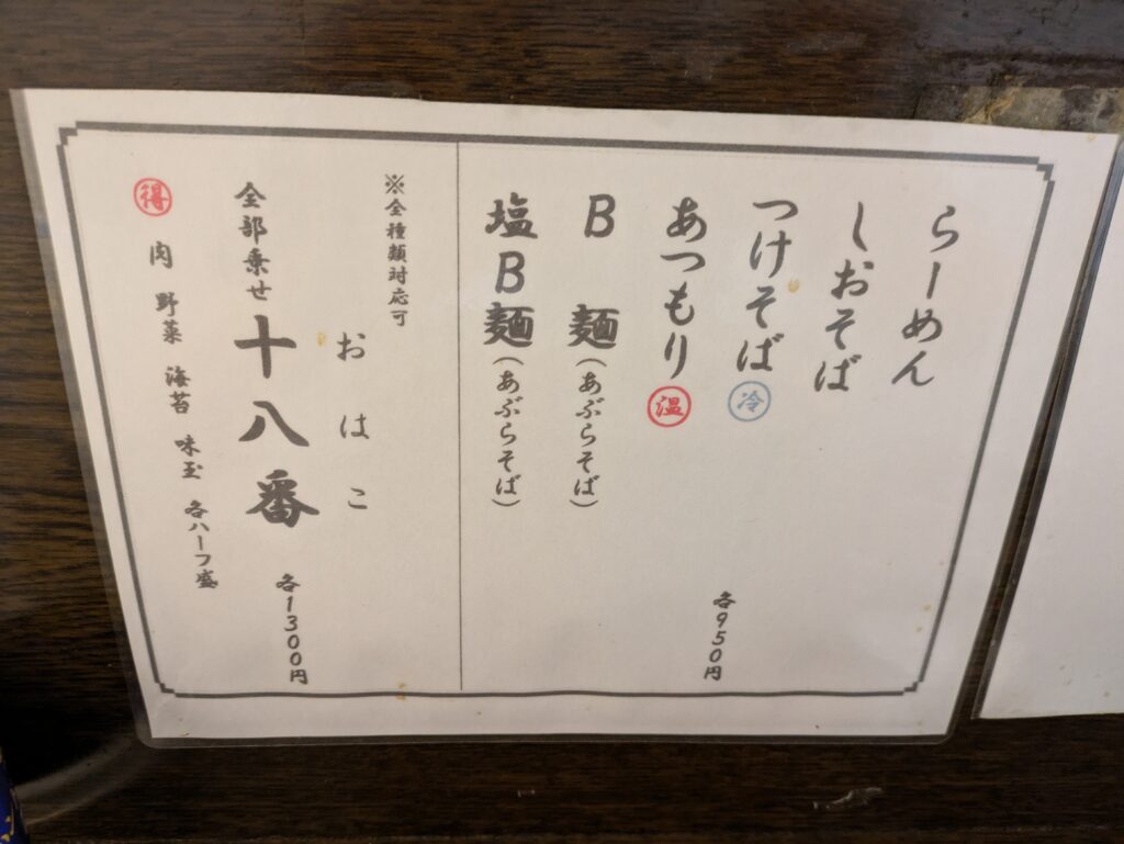 今回はB麺を注文しました。あぶらそばなんですね。