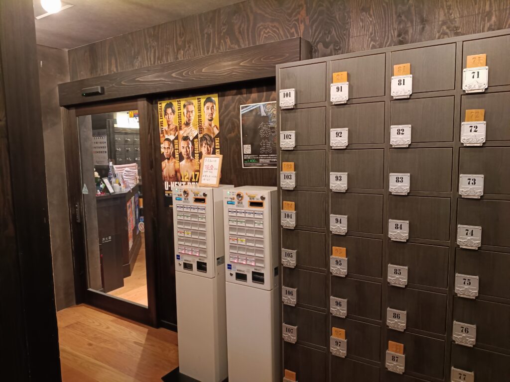 入口から入り靴を下駄箱に入れたら、券売機でチケットを購入します。